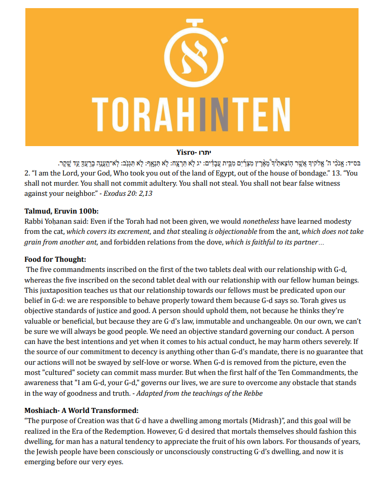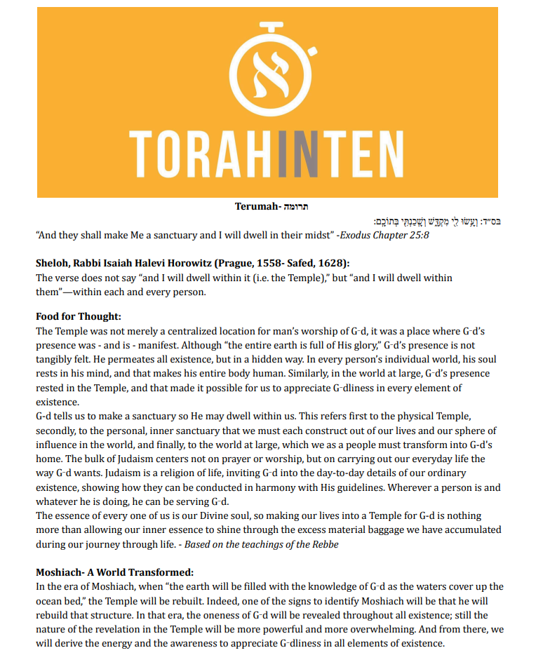 Sources: www.chabad.org, www.sie.org, Kehot Chumash, Sefaria.org