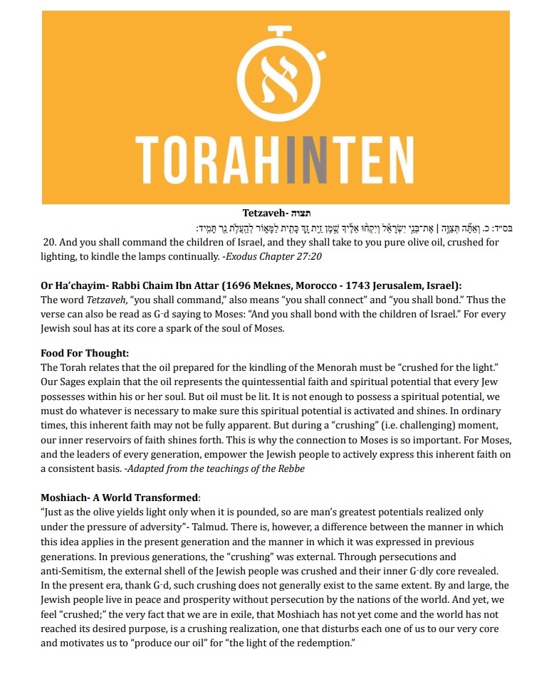 Torah in Ten: Tetzaveh